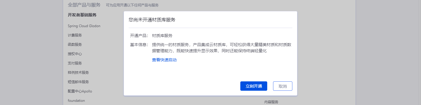 要使用云材质库,首先要开通材质服务,本文主要说明如何开通材质库服务。
