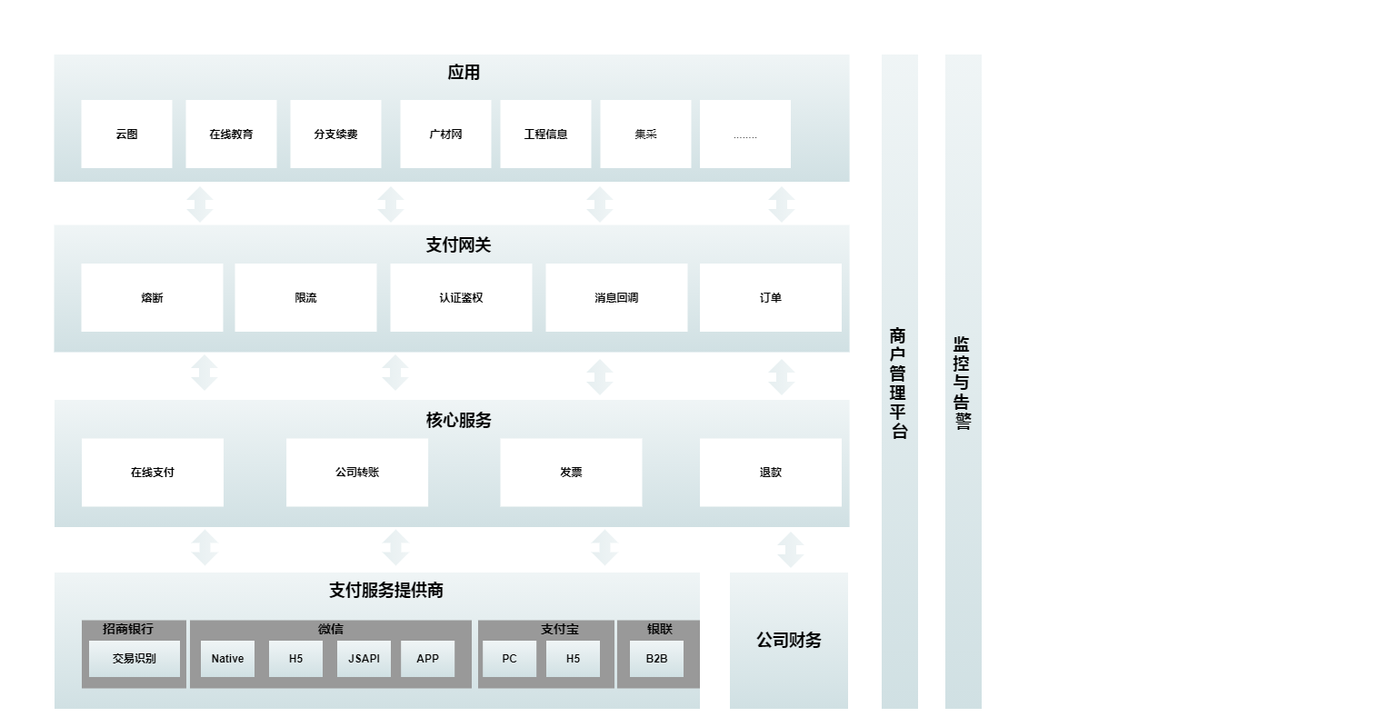 底层对支付提供商等核心支付产品能力进行封装, 具体架构如下: