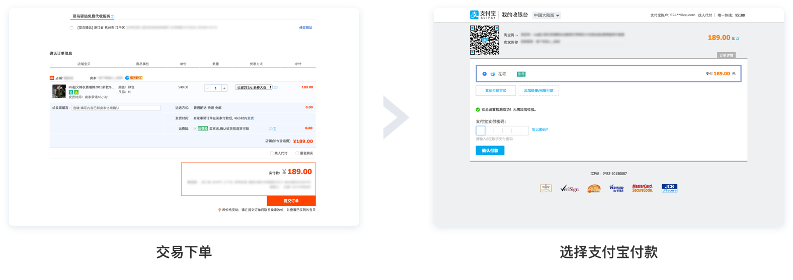 指用户在商家PC网站消费,选择支付宝支付,自动跳转支付宝PC网站收银台完成付款。 交易资金直接打入商家支付宝账户,实时到账.