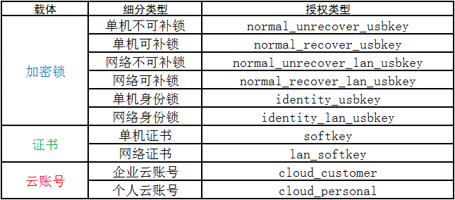 许可是指组织授予给某人或某物在某些条件下做某事的权限。对于软件许可而言,某人/某物指的是载体,就是最终拥有该权限的人、组织或者某物(加密锁、证书等)。某些条件主要是指起始和终止时间、大小、并发数等。做某事则是指使用某个软件产品/套装,此时是需要给出软件产品的标识。许可最终由以下信息的若干组合构成不同的许可类型: