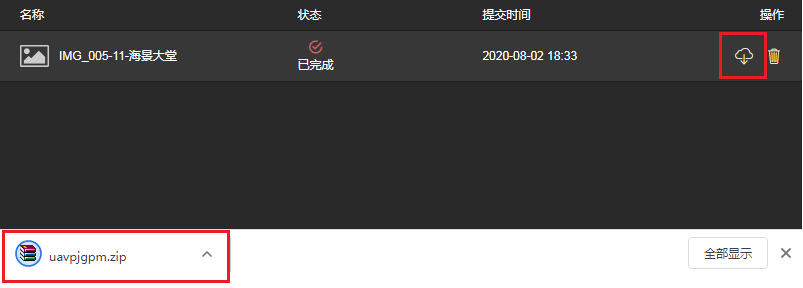 2、方式2:如果实现了任务管理前端页面,可在页面上实时展示任务状态和下载渲染结果,如下图所示。