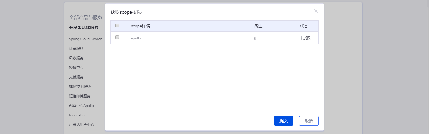 应用创建后选择并开通本服务,申请应用scope