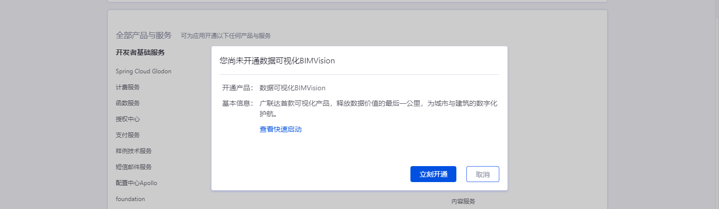 应用创建后选择并开通本服务。